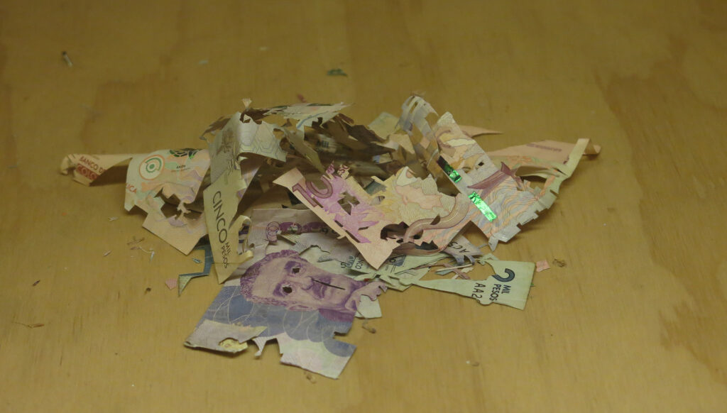 Braim Canizales usa en este proyecto el papel moneda para hacer analogías, encontrando relaciones y contrastes entre lo que parecerían diferentes formas de trabajo, crisis económicas de las sociedades de nuestro tiempo y los imaginarios de prosperidad de éstas mismas sociedades.