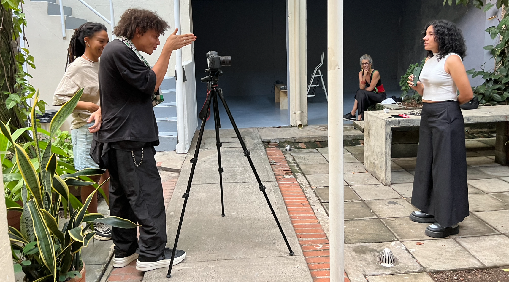 Durante la primera cohorte del semillero, las sesiones fueron coordinadas y moderadas por Éricka Flórez. Durante las sesiones de montaje traíamos distintos interlocutores para que nos ayudaran a resolver problemas y a pensar nuestras elecciones. Entre esas personas, estuvieron Herlyng Ferla y Gerson Vargas. Para la segunda cohorte, dos participantes de la primera cohorte toman roles de coordinación y mentoría (Miguel Escobar y Sahara Rosero serán los tutores de los talleres de producción y montaje). Las sesiones de conceptualización siguen estando a cargo de Éricka Flórez.